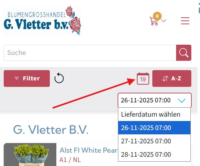 Nach dem Einloggen wird das Angebot für den frühestmöglichen Liefertermin angezeigt.Achten Sie darauf, dass Sie den richtigen Liefertermin wählen.